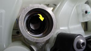 注安装前,确保垫片和 O 型环均未缺失且已经放置入位。润滑冷却液罐 O 型环。