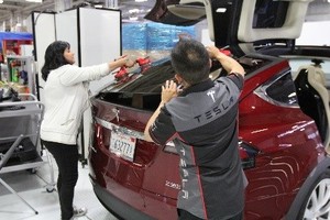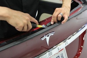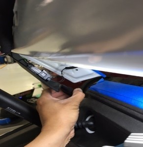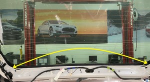- 在掀背车门和主动扰流板周围粘贴遮蔽胶带,保护车辆不受损坏