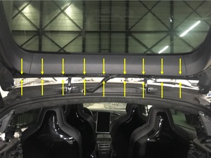通过掀背车门上方先放置好夹紧传感器,然后固定就位