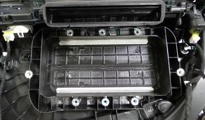 - 从中控台上拆下仪表板维修面板总成。不过,请勿从维修面板上拆下驾驶室温度传感器风扇。请参阅维修面板 - 仪表板(拆卸和更换)。
