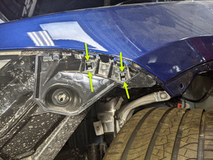- 卡入锁片(3 个),将前饰板左侧固定到翼子板上。