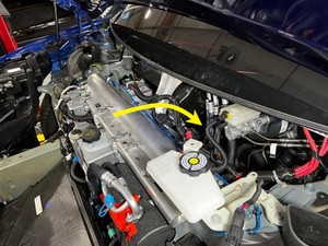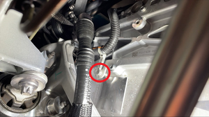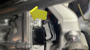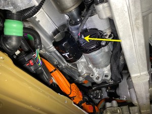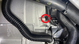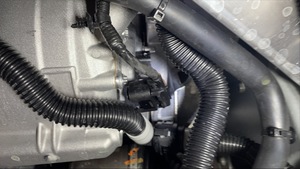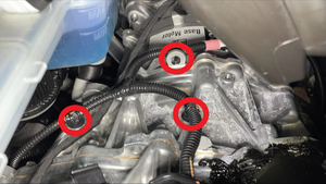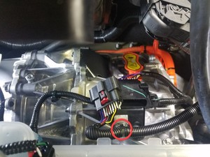- 将前驱动单元逻辑连接器送入电机安装座和冷却液软管下方。