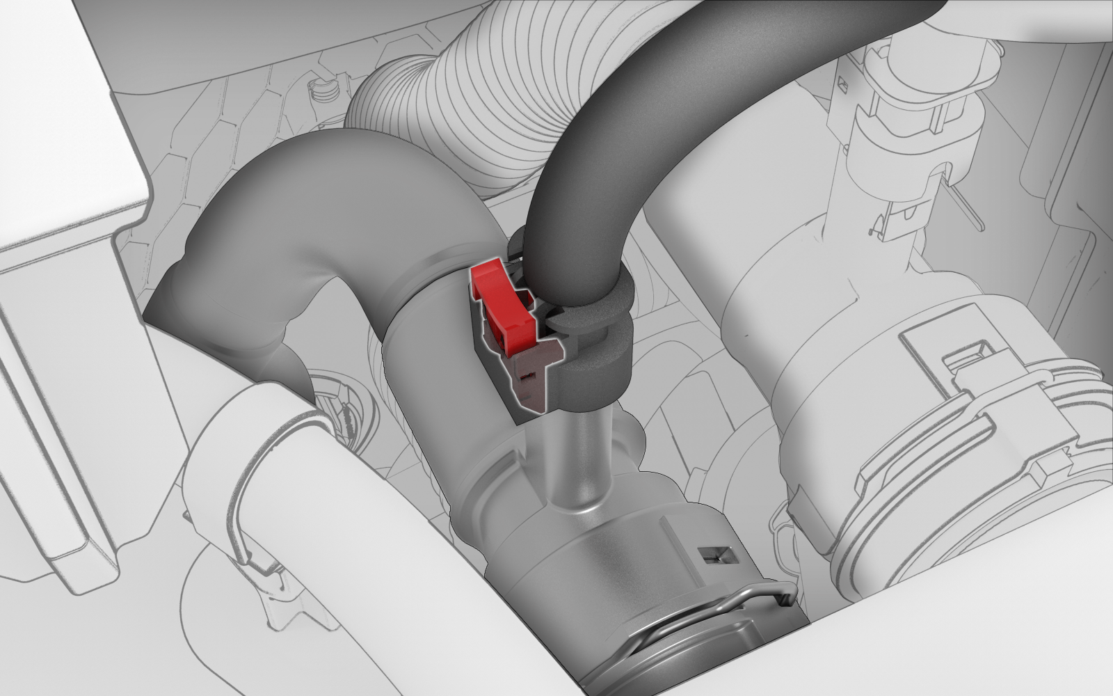 - 连接动力总成供液管并塞住软管两端,然后将动力总成供液软管安装到车身上。