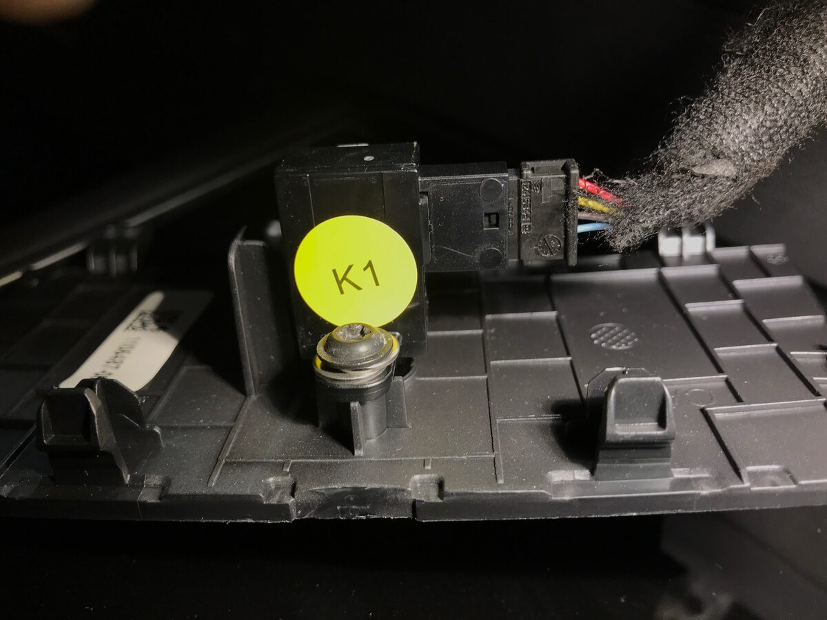 - Release the clips (x4) and tabs (x4) that attach the instrument panel service panel to the vehicle, and then disconnect the temperature sensor connector.