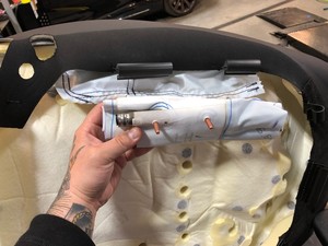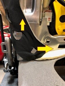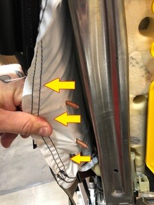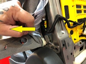 - 将驾驶位内侧安全气囊滑槽从座椅靠背泡沫上拉出。