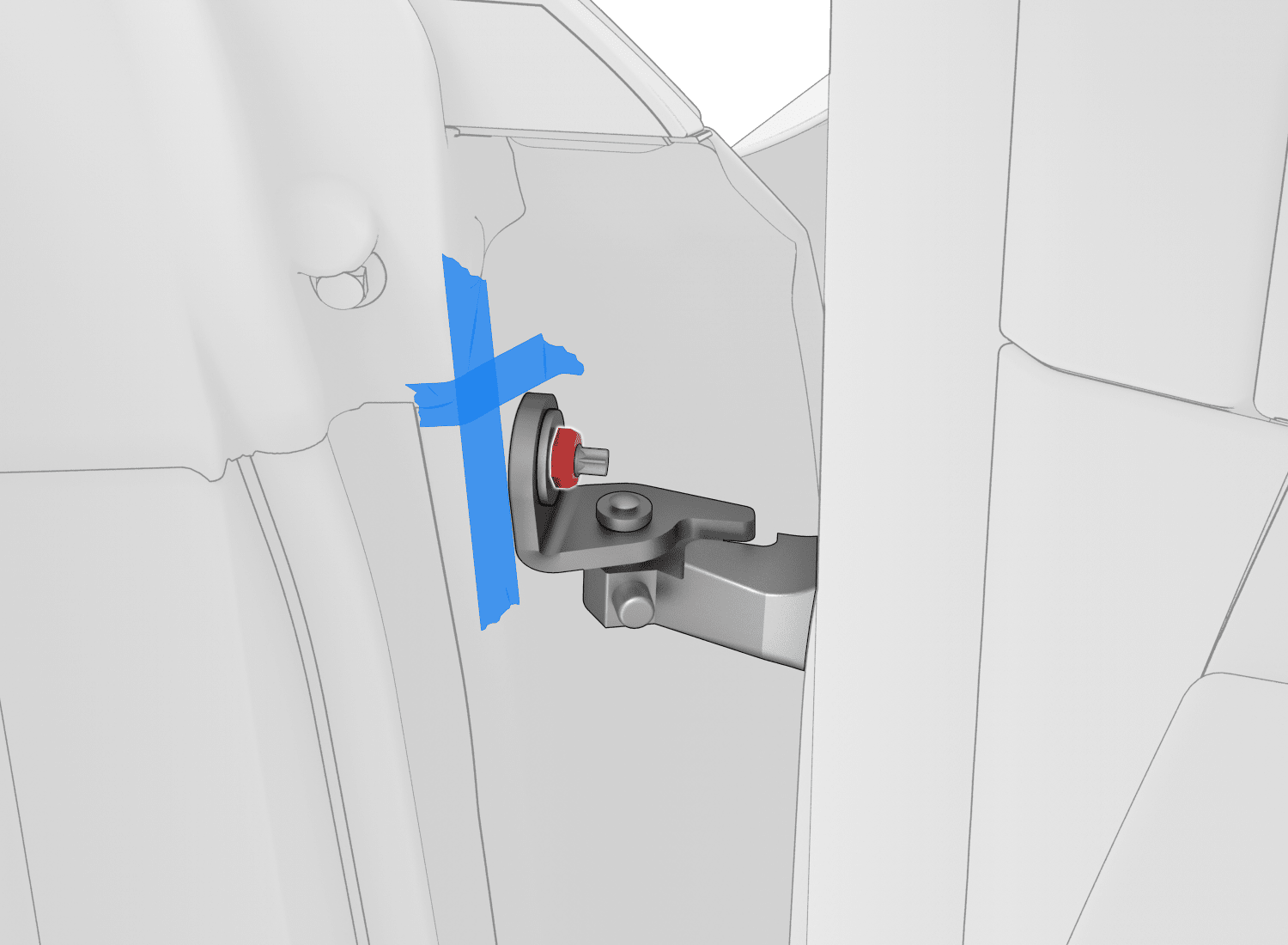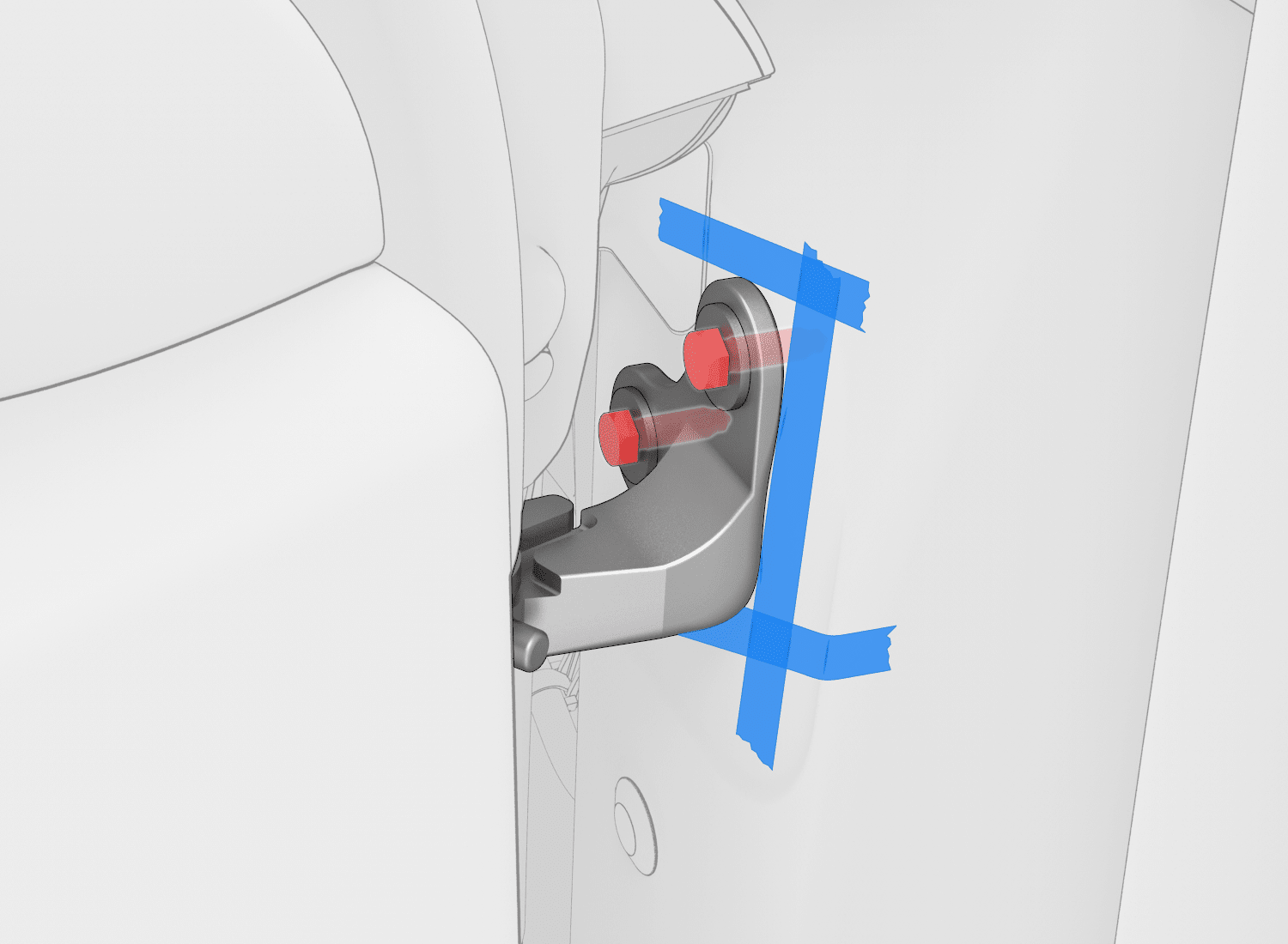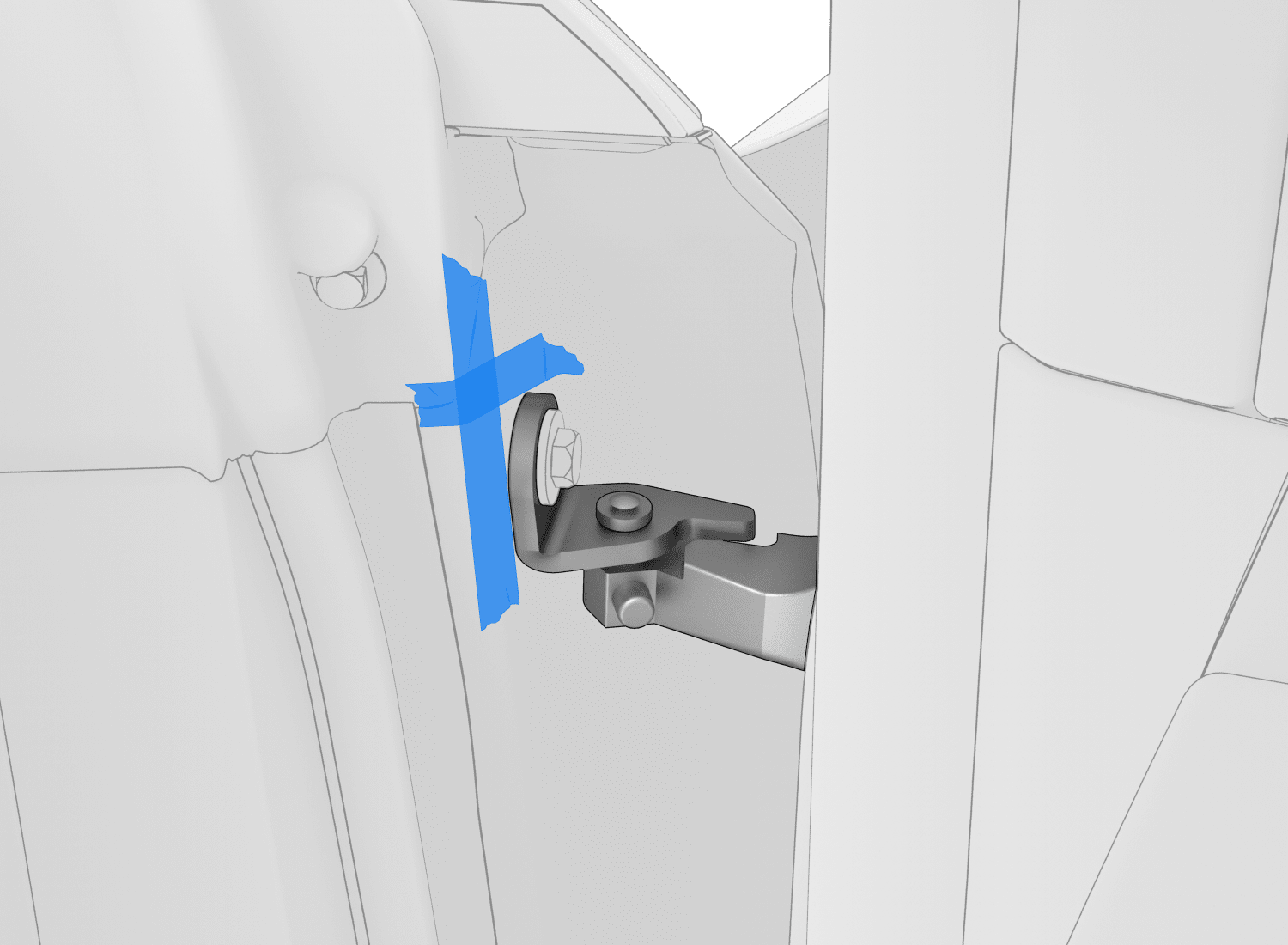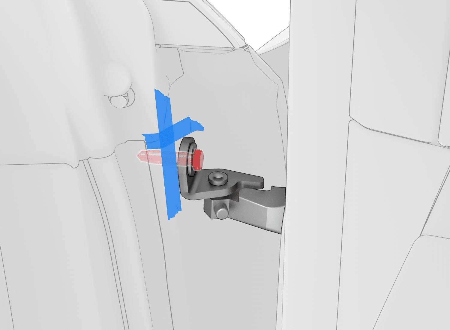 根据需要向 LH 前车门铰链螺栓上涂抹修补漆。