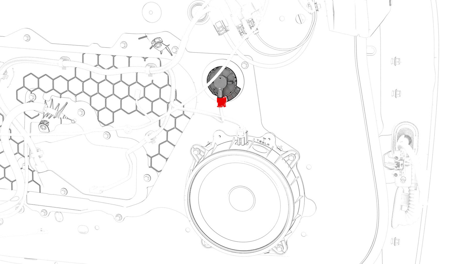 - 逆时针转动锁片,然后从封闭板上拆下后门气囊传感器。