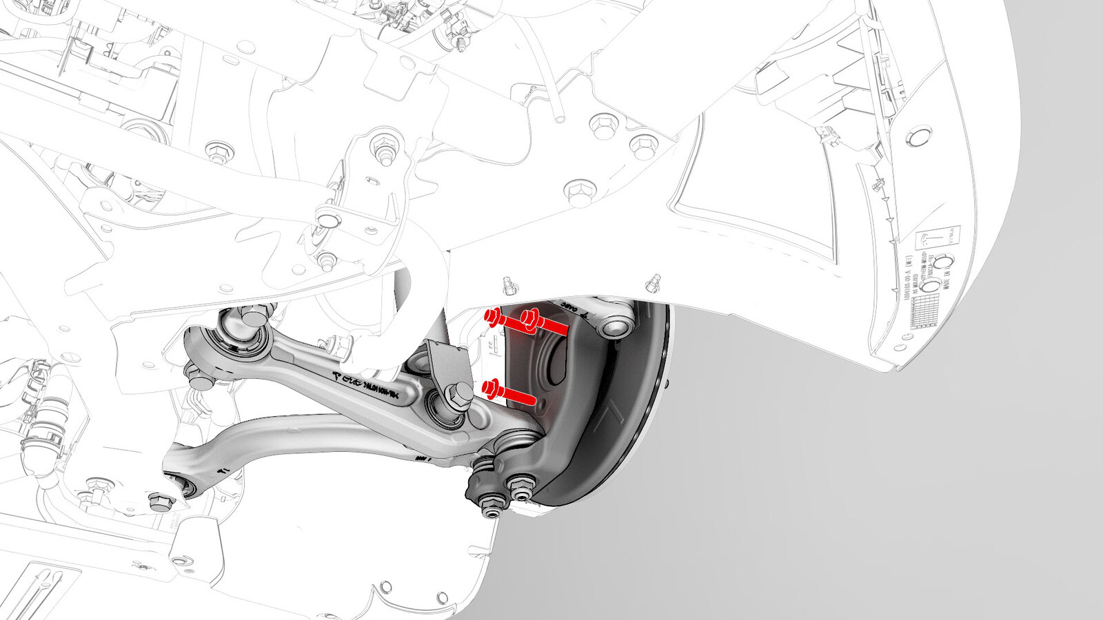 将 LH 前轮毂置于转向节上,然后安装此轮毂固定到转向节的螺栓。