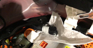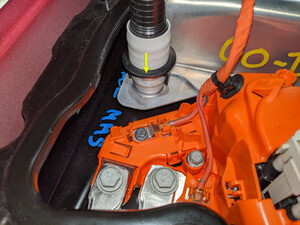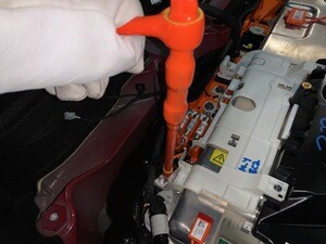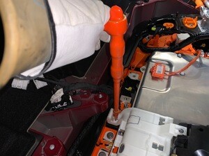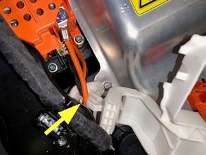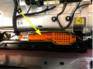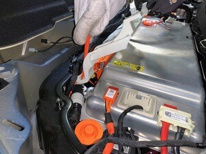 注检查高压电池仓是否缺失任何绝缘体;如有缺失且能够安装,应在进行下一步之前予以安装。