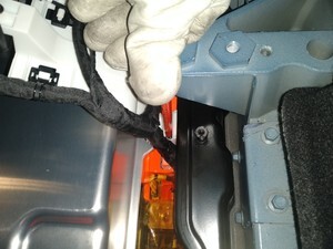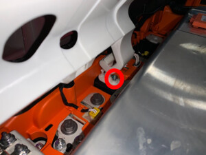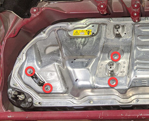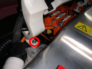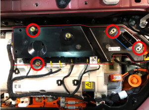 将用于固定电池外壳后车底护板的上部螺栓从高压电池上拆下