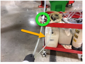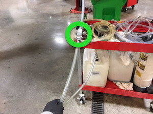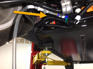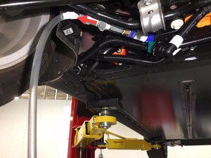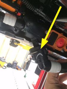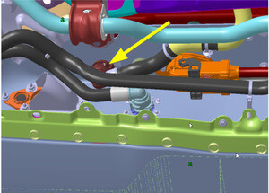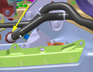 - 将冷却液排放容器放置在高压电池左后侧下方