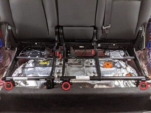 注4 个螺栓,11 毫米,37 Nm;座椅底部螺栓位于主地毯后部
