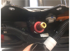 使用异丙醇清洁高压控制器螺柱和高压电池仓盖板下方。