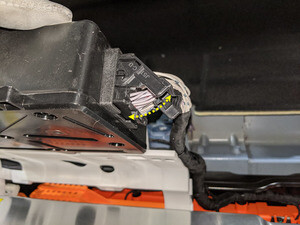 注1 个螺母,10 毫米,6 Nm;请勿安装紧急响应回路;将在高压电池仓盖板拆除的情况下执行 Toolbox 例程;高压电源将在稍后的步骤中连接。