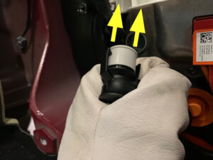 - 将高压电池仓探针盖从高压电池仓盖板上拆下。