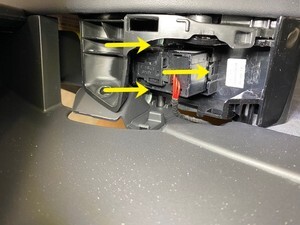 断开 LH 后车窗开关电气连接器,然后将开关从车上拆下。