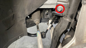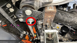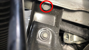 - 拆卸将左前支柱固定到左前下方横向连杆的螺栓和螺母。
