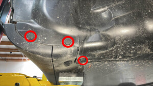 - 松开将右前轮拱内衬固定到右门槛板罩的卡子(3 个),然后将内衬移到一旁。