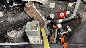- 当副车架升起时,引导电机支座衬套进入电机支座隔离器,并确保支柱跨过车轴和横向连杆。