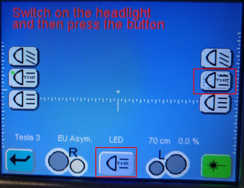 在前照灯测试仪工具上,按下屏幕左侧的左TMR按钮,然后按下屏幕底部的TMR按钮。