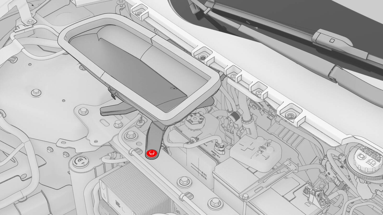 - 拆下前备箱储物单元。请参阅前备箱储物单元(拆卸和更换)。