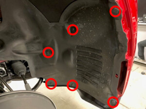 - 拆下将 RH 前轮拱内衬固定到前饰板的夹子 (x6)。