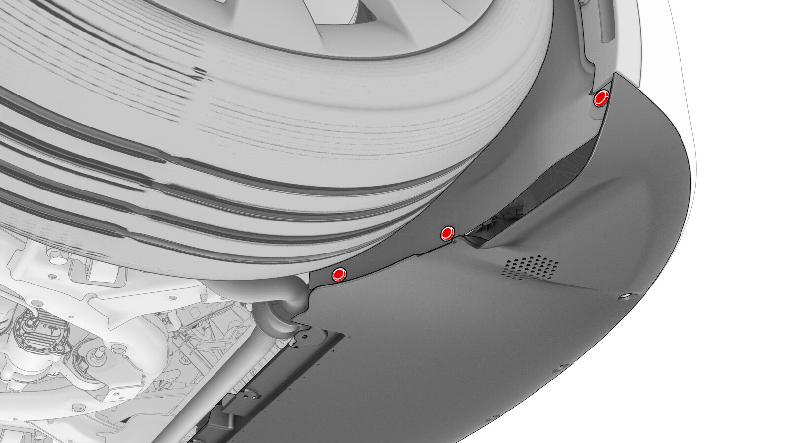 - 拆下前流线型护板。请参阅面板 - 流线型护板 - 前(非结构化电池组) (拆卸和更换)。