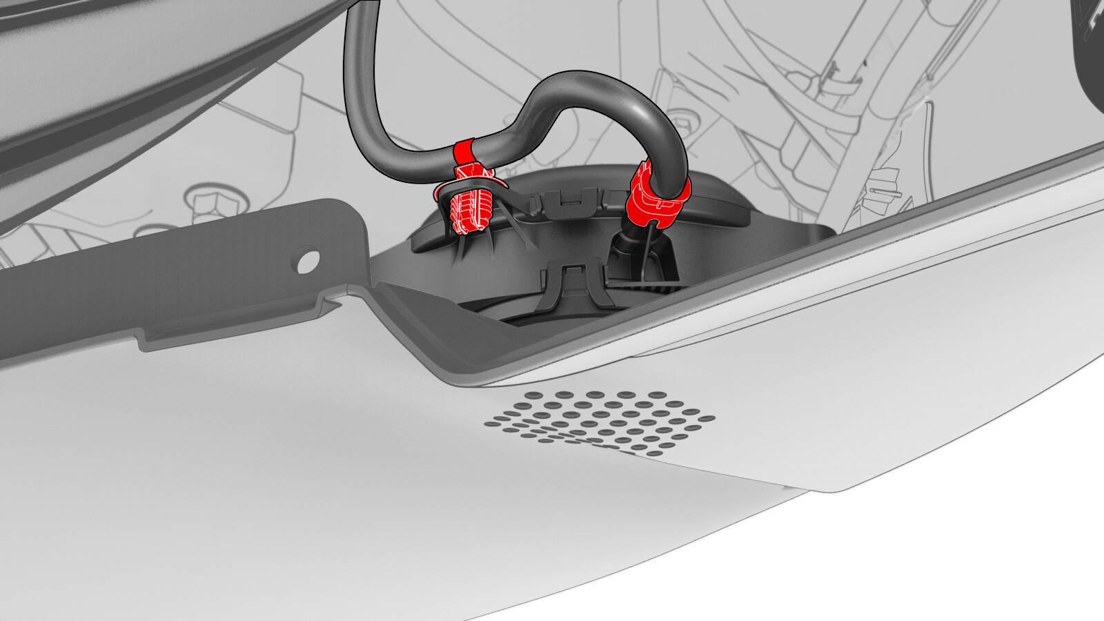 注拉动锁片以松开连接器锁。注行人警示扬声器位于 RH 轮毂内衬的后方。