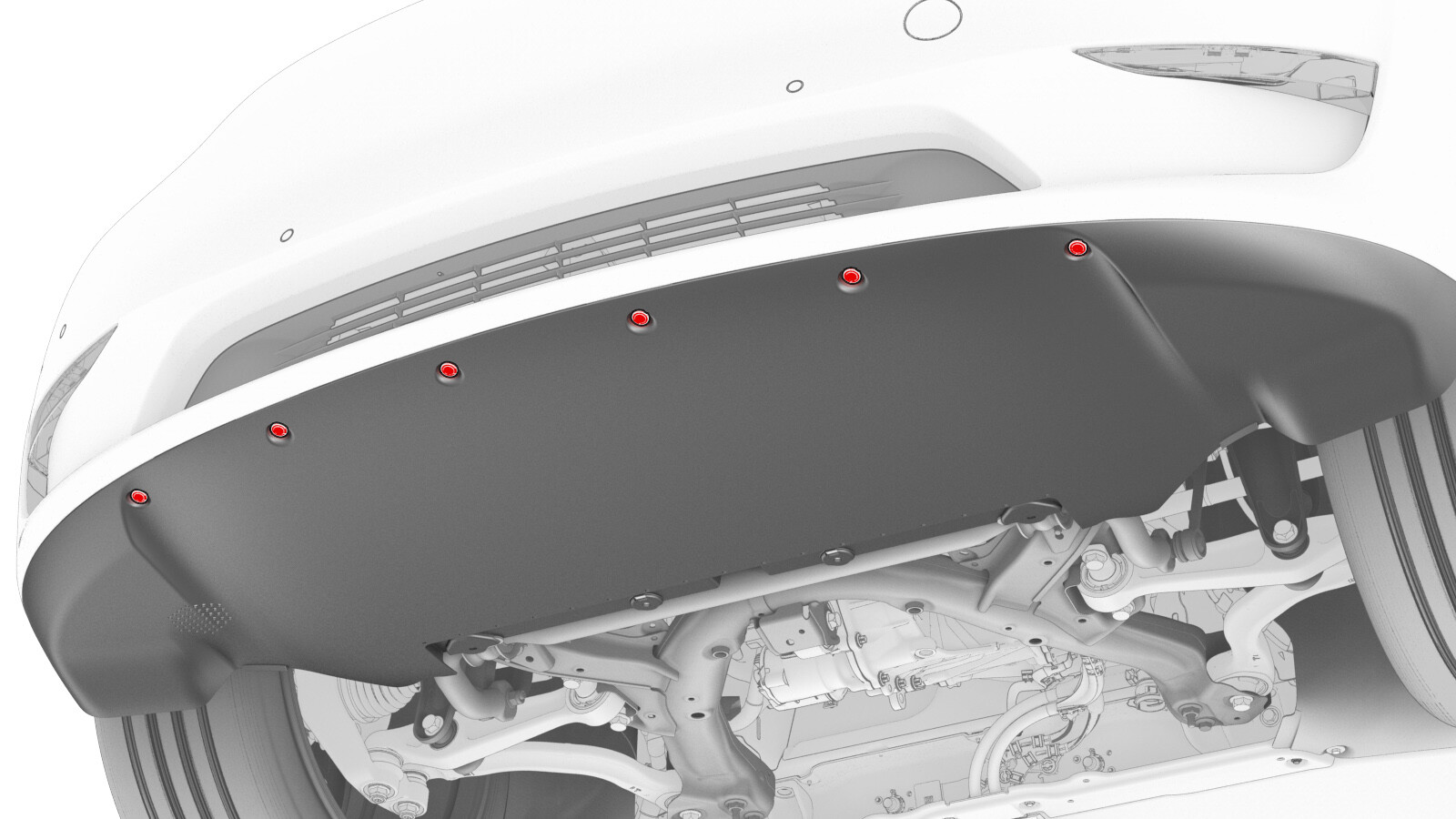 - 拆下将前裙板固定到前饰板的夹子,然后从车上拆下裙板。