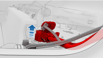 警告切勿向下按压红色锁片。将锁片拉离连接器,直至连接器解锁,然后继续拉动以松开连接器。