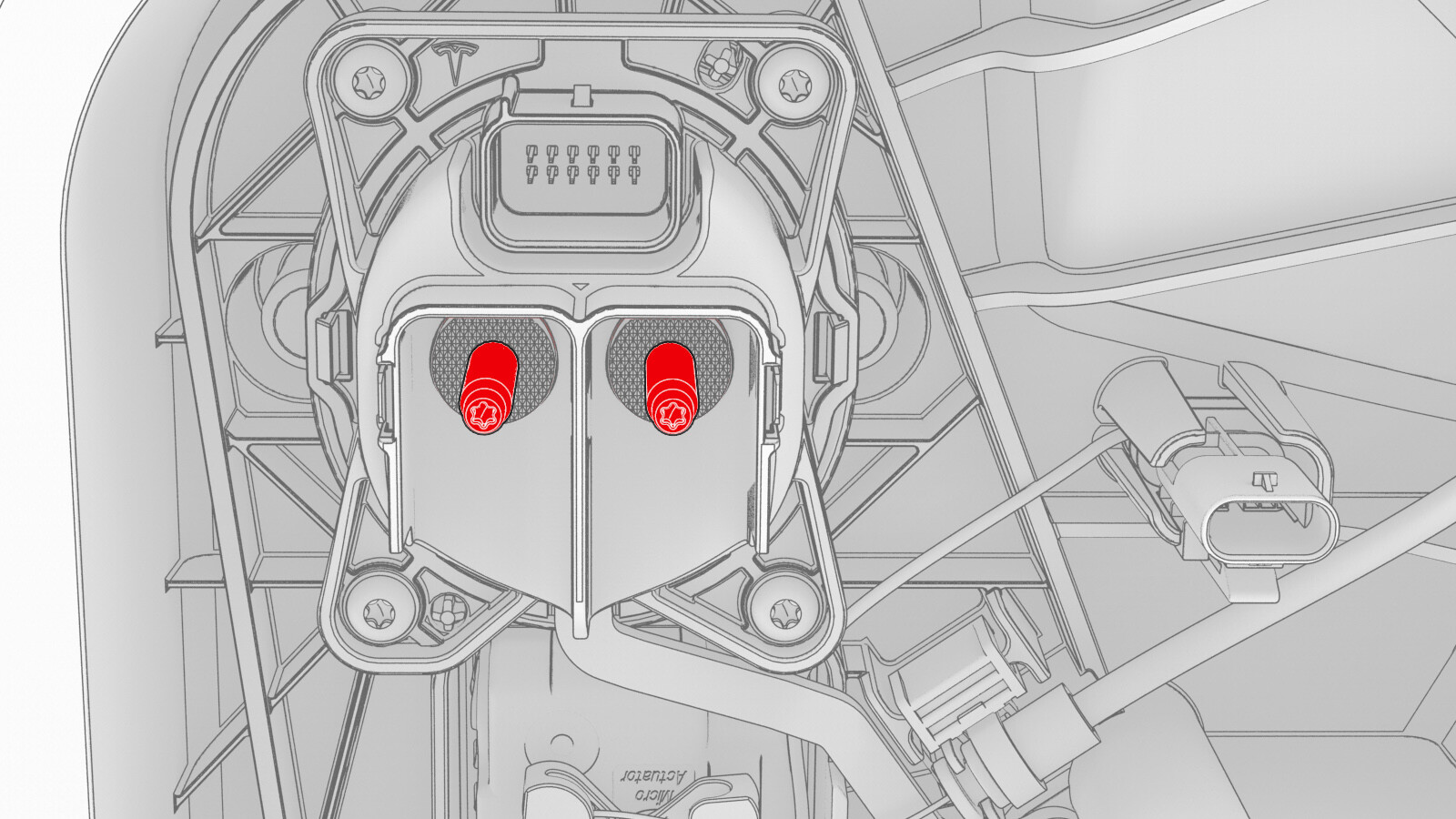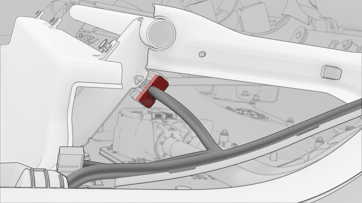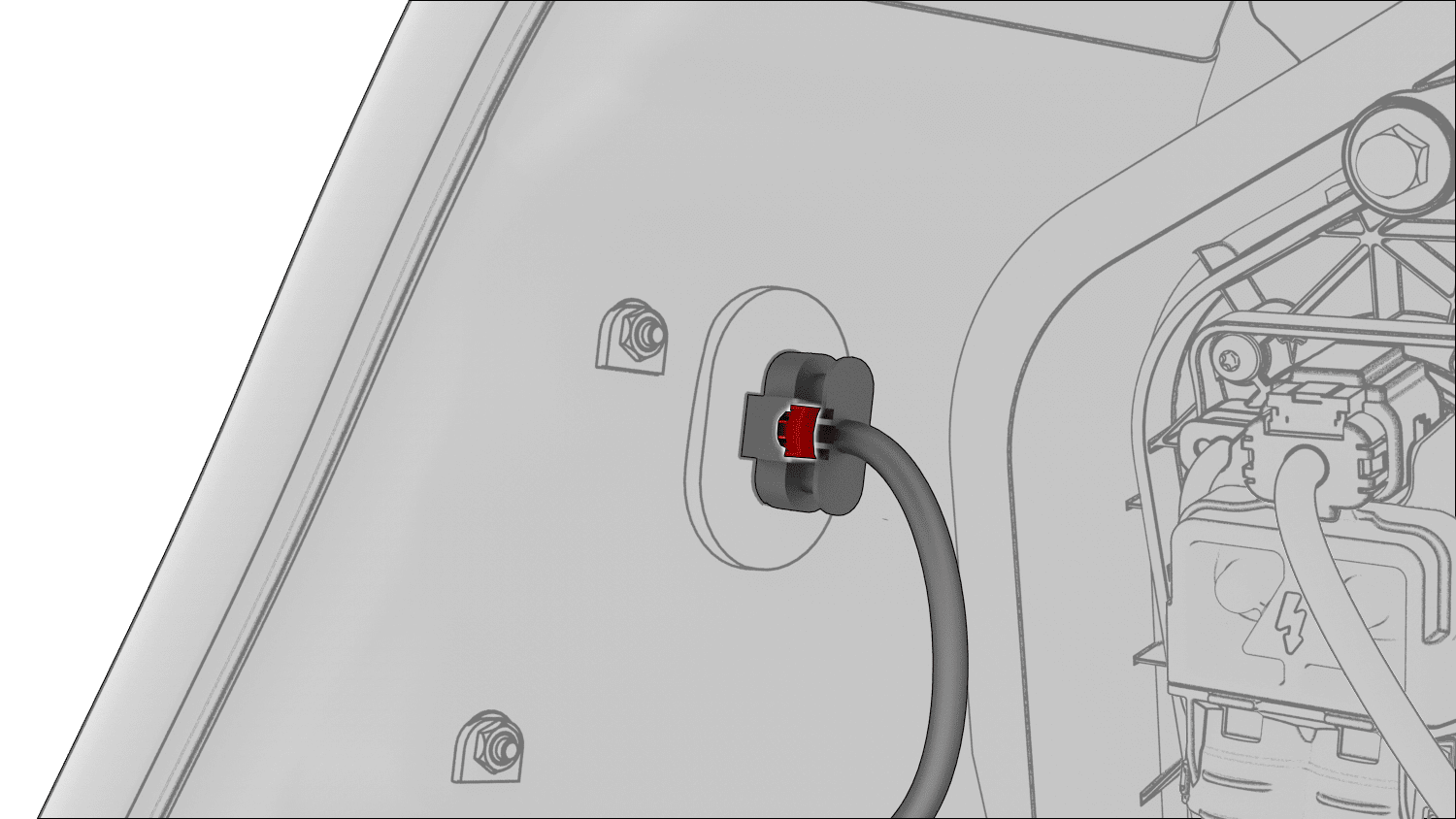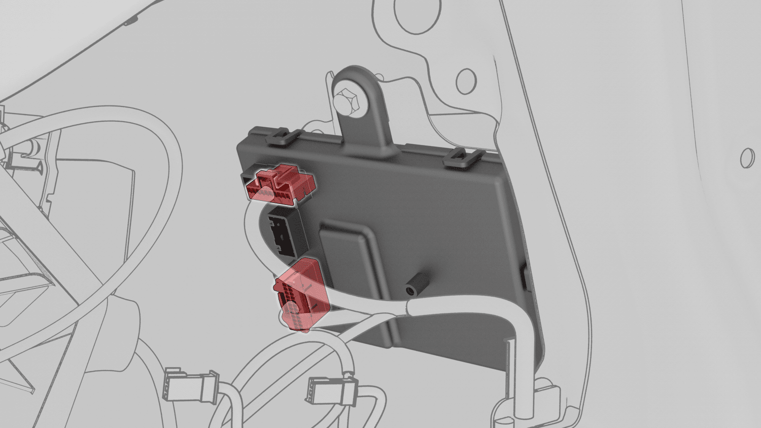 - 将左侧车身线束连接器(2 个)连接到充电接口电子控制单元 (ECU)。