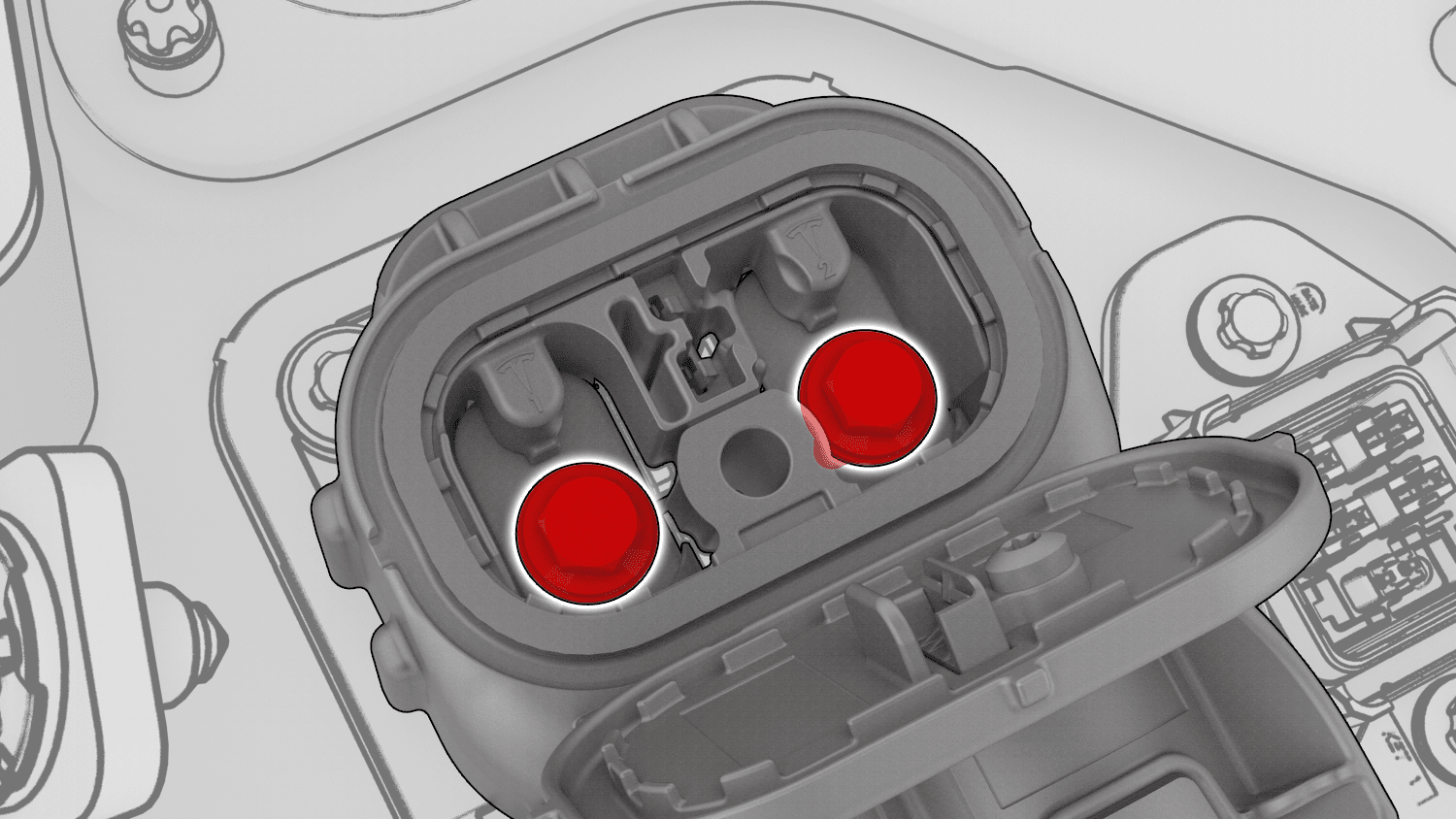 - 使用异丙醇 (IPA) 湿巾清洁高压电池仓处的充电接口母排高压接头,然后等待风干 1 分钟。