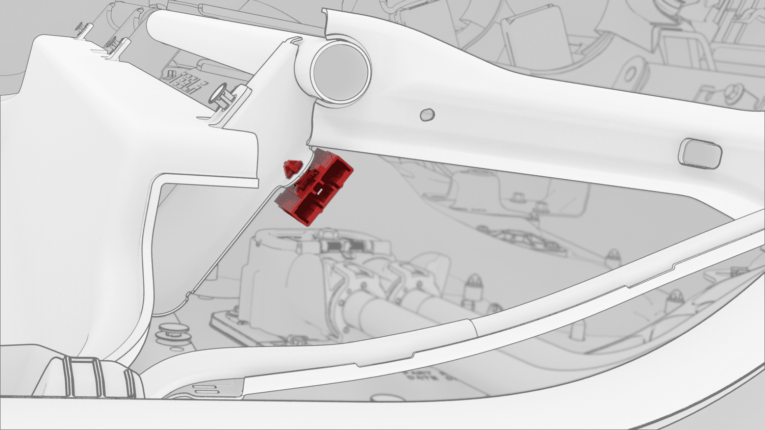 - 松开将电气连接器固定到左后座椅滑轨的卡子,然后将连接器移至一旁。