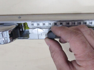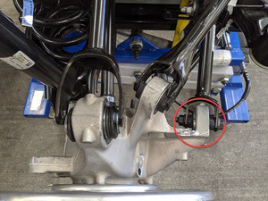 作为辅助检查,测量围板底部到轴中心的距离,以确保左悬架已设置到行驶高度