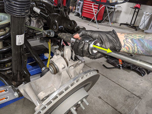 将轮毂轴承千斤顶适配器从左后轮毂轴承上拆下