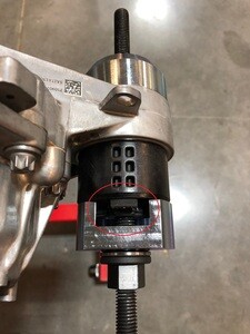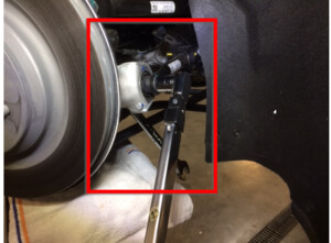 将轮毂轴承千斤顶适配器安装到左后轮毂轴承上