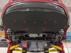 拆卸用于固定电池外壳后车底护板的下部螺栓