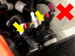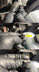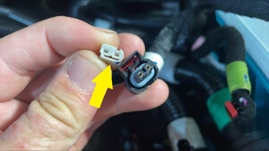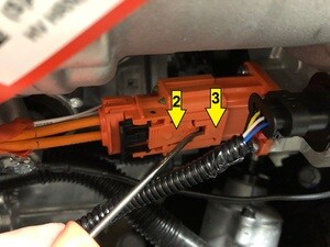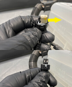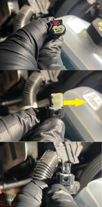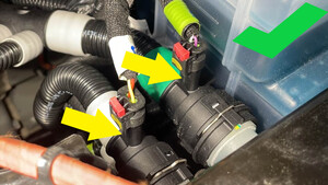 注2 个连接器,2 个传感器;检查所配备冷却液温度传感器的类型;早期生产的 Model Y 具有不同样式的温度传感器;如果您遇到早期版本的温度传感器,则新超级歧管替换件接头可能不适用于旧传感器;此情况下,必须将电气连接器盖从旧超级歧管换到新超级歧管替换件上;这将在后续步骤中完成;如果冷却液温度传感器为较新的版本,则不需要改造