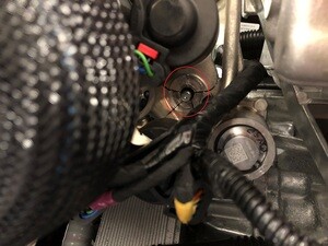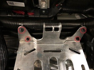 拆下将高压电池仓探针盖固定到高压电池仓盖板的螺栓。