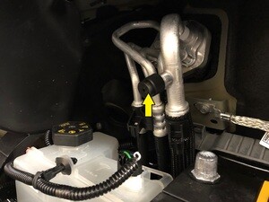 注确保压缩机和鼓风机都处于关闭状态,这样驾驶室冷凝器内部的制冷剂才可以返回蓄压器