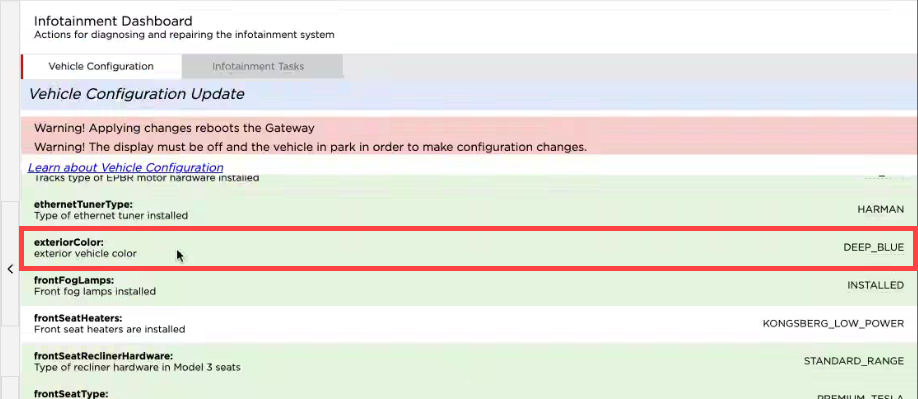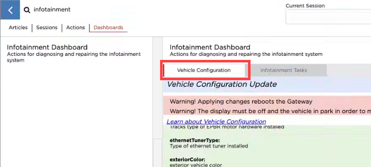 在信息娱乐显示屏上, 点击Vehicle Configuration选项卡。