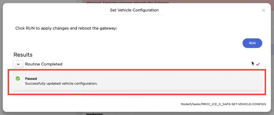 - 有进度显示,且重启后,窗口上会出现更新车辆配置成功的提示。