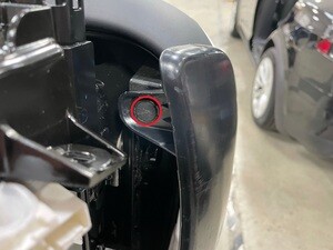 - 安装将第二排 LH 座椅侧护板连接到座椅总成的夹子。