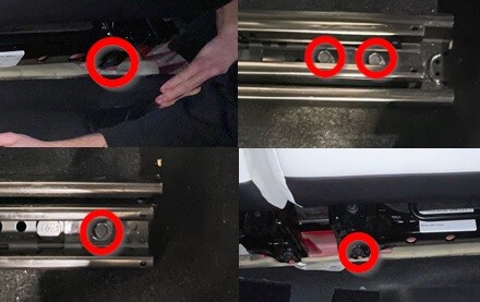 - 安装并用手拧紧将第二排 LH 座椅连接到车辆的新螺栓。