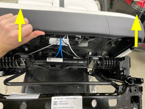 注确保不挤压座垫总成和座椅骨架之间的电缆和线束。