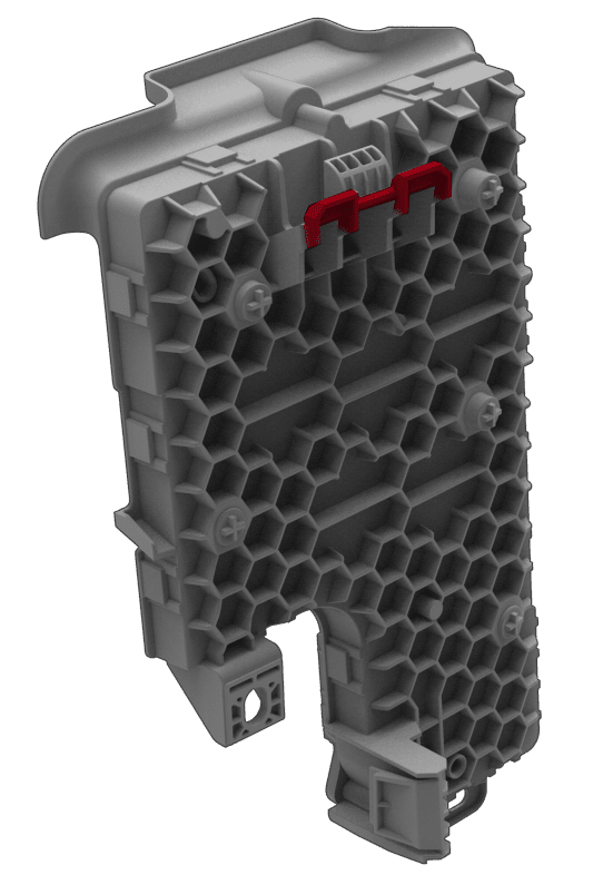 - 安装将黑色连接器固定到右侧车身控制器模块的卡子。