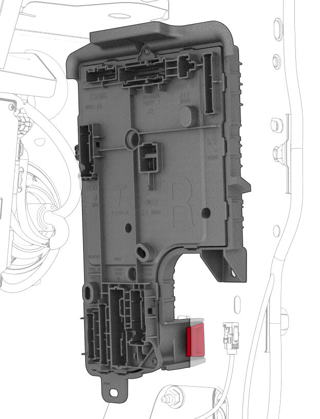- 将 J6 前备箱储物单元电气连接器从右侧车身控制器模块上断开。