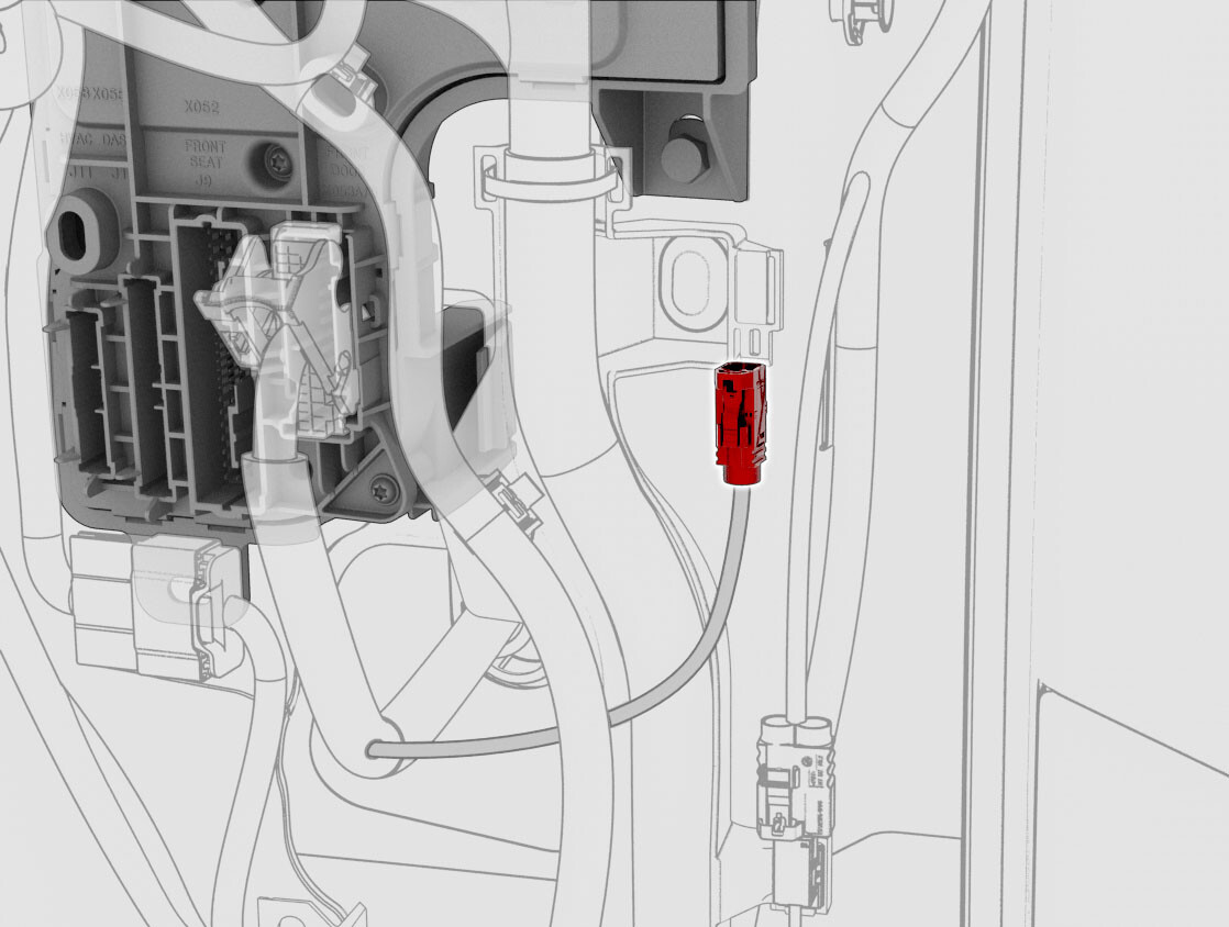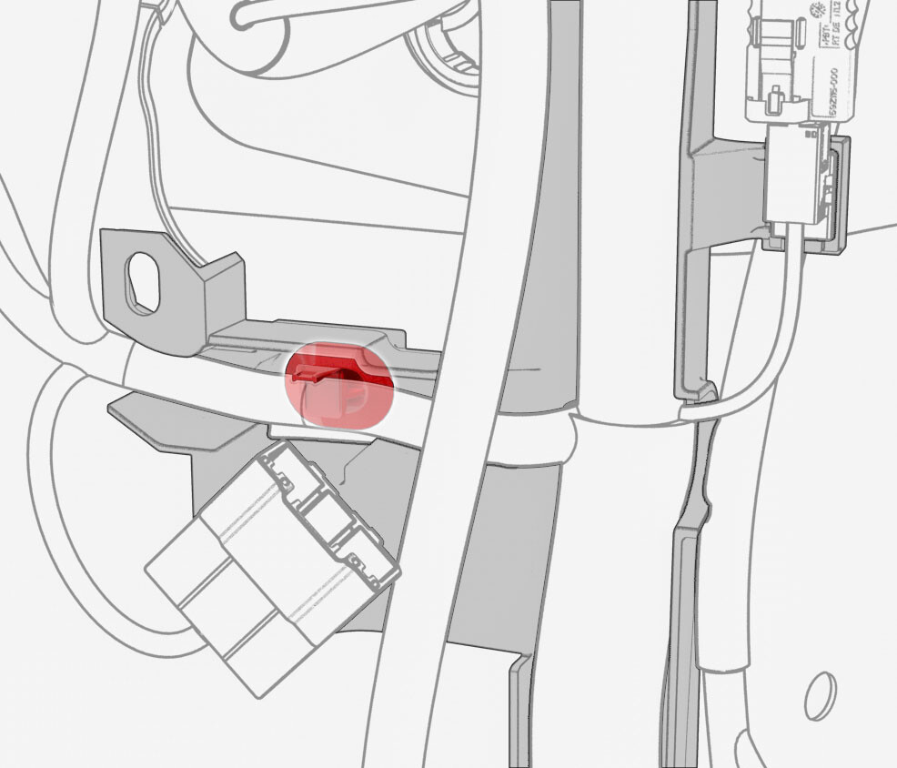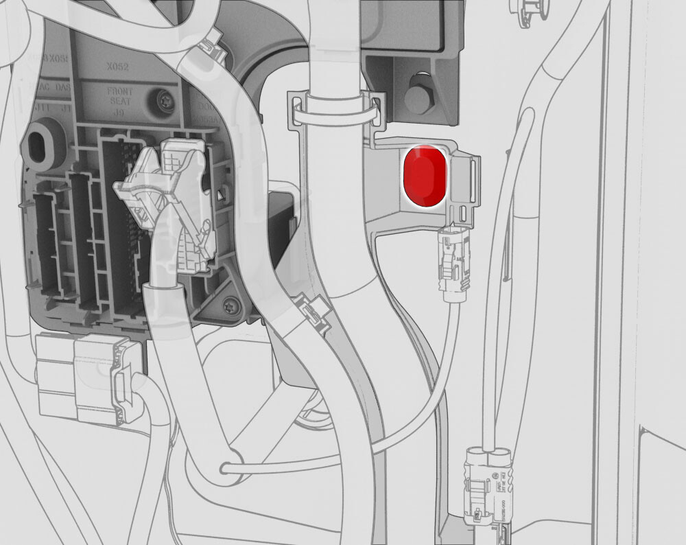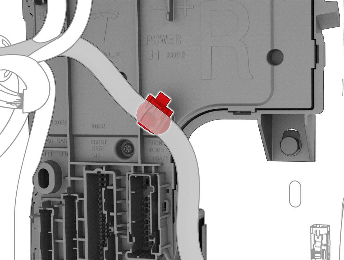 - 安装将右侧车身电气线束固定到右侧车身控制器模块区域的夹子。