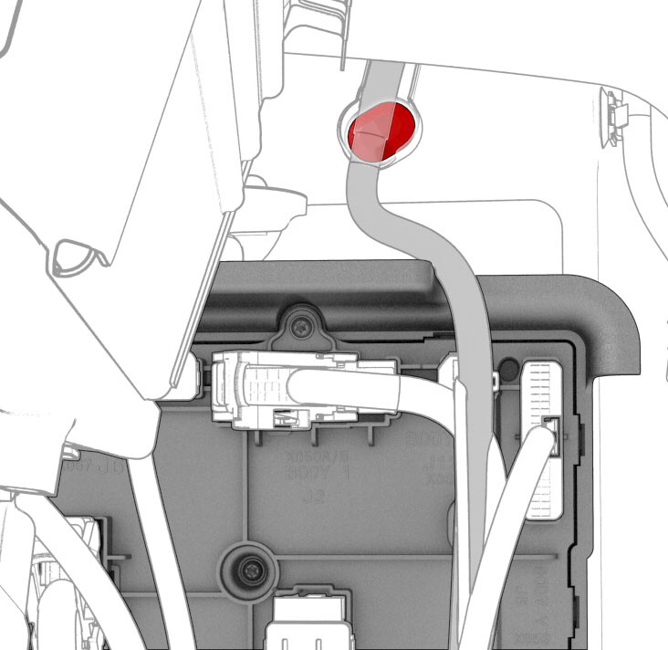 - 将 J12 车身电气连接器从右侧车身控制器模块上断开。