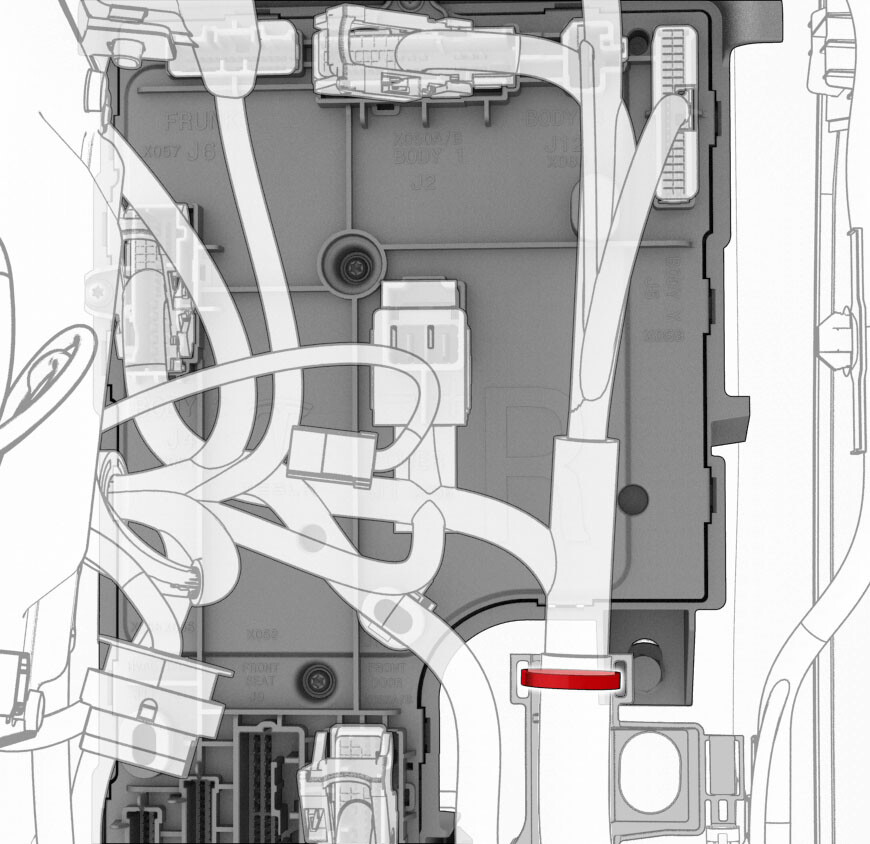 - 将 J6 前备箱储物单元连接器连接到右侧车身控制器模块。